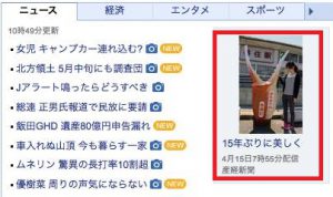 そんな中でYahoo!のトップニュースにあがる確率って年に1、2回あるかないかなのです。
