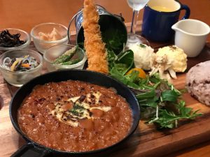 カレーだけでも十分ボリュームがあるのですが、色々なお料理がちょっとずつ小鉢に乗っているのが嬉しいです。