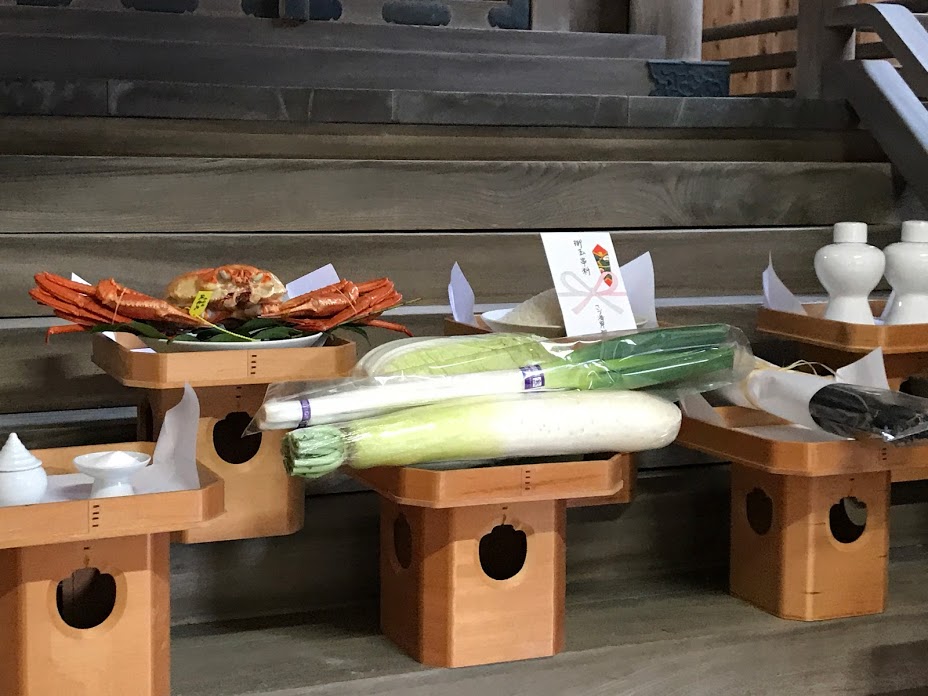 集落内にある神社(沖野神社と言います)にて、毎年11月上旬にカニの豊漁とカニシーズンの繁盛を願い、さづ海岸観光組合員全員でご神事を行います。
