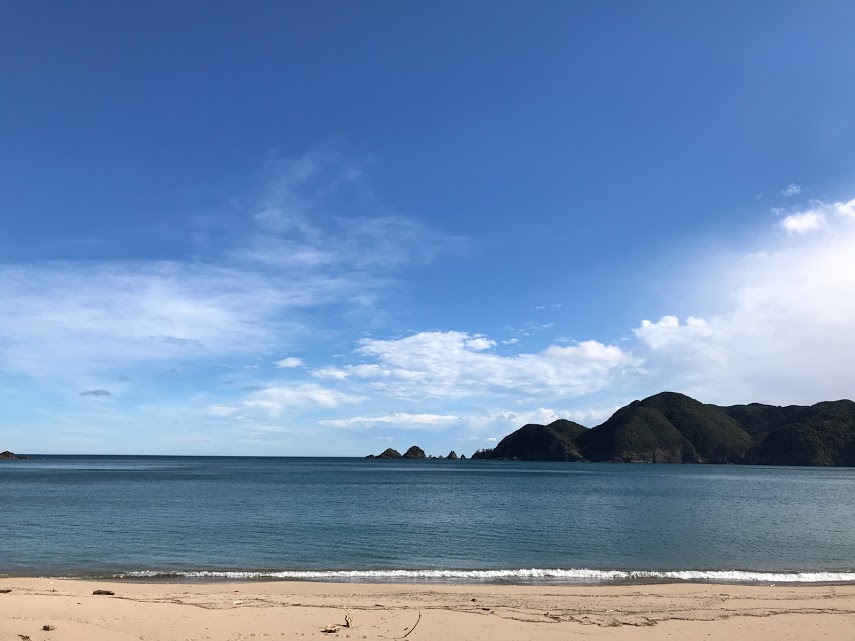 こちらの安木浜海水浴場からも貝殻島が見えるのがわかると思います。海岸線、佐津から竹野に向かう道中にある穴場海水浴場です。(佐津海水浴場も十分穴場という話もありますが・・・)