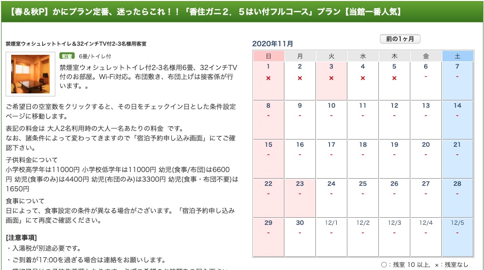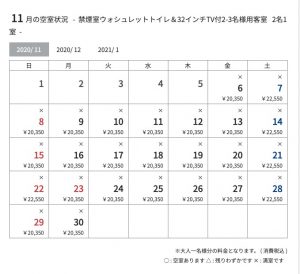 11月5日までが×、つまり満室、売り切れ。11月6日以降は販売終了といいますか、未販売、販売予定なし、という意味です。