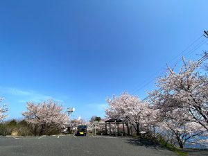 また、今の時期は駐車場や灯台周辺が桜で覆われ、上記紹介文にもある通り、行く道中も桜街道にもなります。