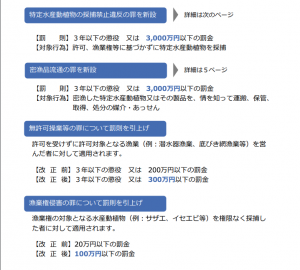 特定水産動植物の採捕(令和2年12月1日施行). 罰則:3年以下の懲役又は3,000万円以下の罰金?対象行為