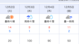 12月17日(日)以降、寒気によって気温が一気に下がる予測です。