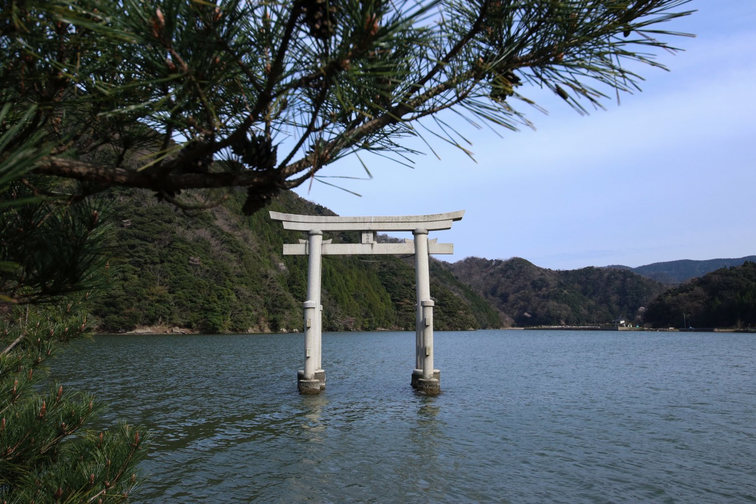 神社は楽々浦湾越しに新城崎大橋が見える場所にあります