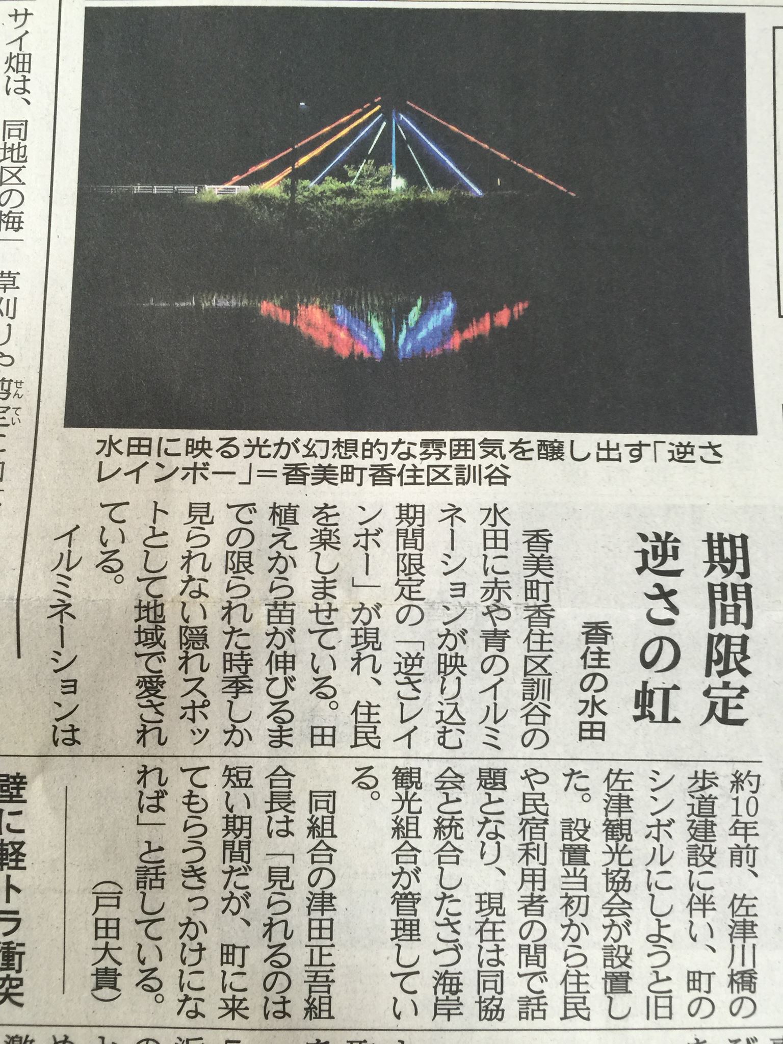 「逆さレインボー」は田んぼに水のはられた時期のみ限定。見られるのは今月いっぱいぐらいまでです!!