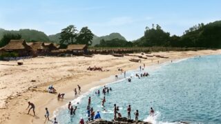 まちの話 昔の佐津集落の白黒写真を生成AIでカラー写真にしてみました