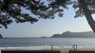 浜の全長が700mほどですので、民宿かどやから海に出て、浜の遊歩道を往復すれば、約30分約1.5km余りのお散歩になります。チェックイン後、お天気が良ければお散歩されるお客様も多いですし、朝早く、朝食前にお散歩される方もいらっしゃいます。