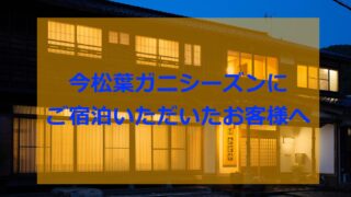 ご挨拶・ご報告 LINEお問い合わせをされた方で、当館にご宿泊いただいたお客様へ LINEお問い合わせをされた方で、当館にご宿泊いただいたお客様へおはようございます!民宿美味し宿かどやのガクです!!当館ではお電話ではなく、LINEでお問い合わせをいただけるお客様が増えてまいりました。細かいお打ち合わせやご要望、あるいは列... 2026.03.03 ご挨拶・ご報告