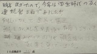 昨年良かったので、今年は学生時代の友人達総勢8名で来ましたが、美味しいかにで全員大満足。朝食もかにめし迄用意頂き、有雍うございました。みやげののりや朝食後のコーヒーサービス、友人達も喜んでいました。