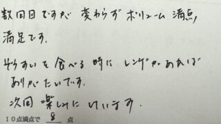 数回目ですが、変わらずボリューム満点満足です。ぞうすいを食べる時にレンゲがあればありがたいです。次回楽しみにしています。(愛知県M様 親族旅行)