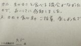Y様。この度は民宿かどやをご利用いただきまして誠にありがとうございました。今回、2階のお部屋5室を全てをご利用いただくため、全館貸切とさせていただきました。皆さんだけでカニを堪能しながら懇親のお時間をおとりできたのではないかと思います。また、各々のご家族様でもぜひ、お越し下さいませ。ありがとうございました。