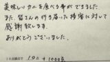 Y様。いつも民宿かどやをご利用いただきまして、誠にありがとうございます。タグ付きのゆで柴山がにもおつけしたボリュームたっぷりのカニ3ばいいい旅プラン。今シーズンもカニ料理をご満足いただけたようで良かったです。今回はお父様がお越しになれず、残念でした。変わらぬ美味しいカニを提供してまいりますので、これからも引き続きご愛顧の程、よろしくお願いします。来シーズンもお越しをお待ちしております。ありがとうございました。