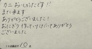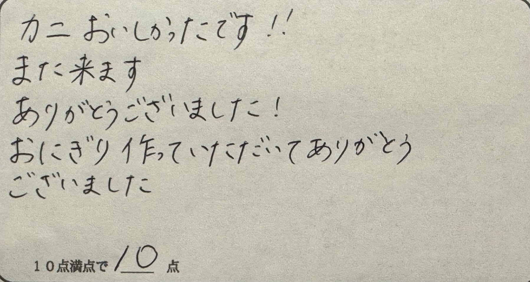 カニおいしかったです!!また来ます。ありがとうございました!おにぎり作っていただいてありとうございました。(兵庫県N様 大人の親子旅 2025.10.9.  【春・秋P】かにプラン定番、迷ったらこれ!! ”香住ガニ2.5はい付フルコース”)