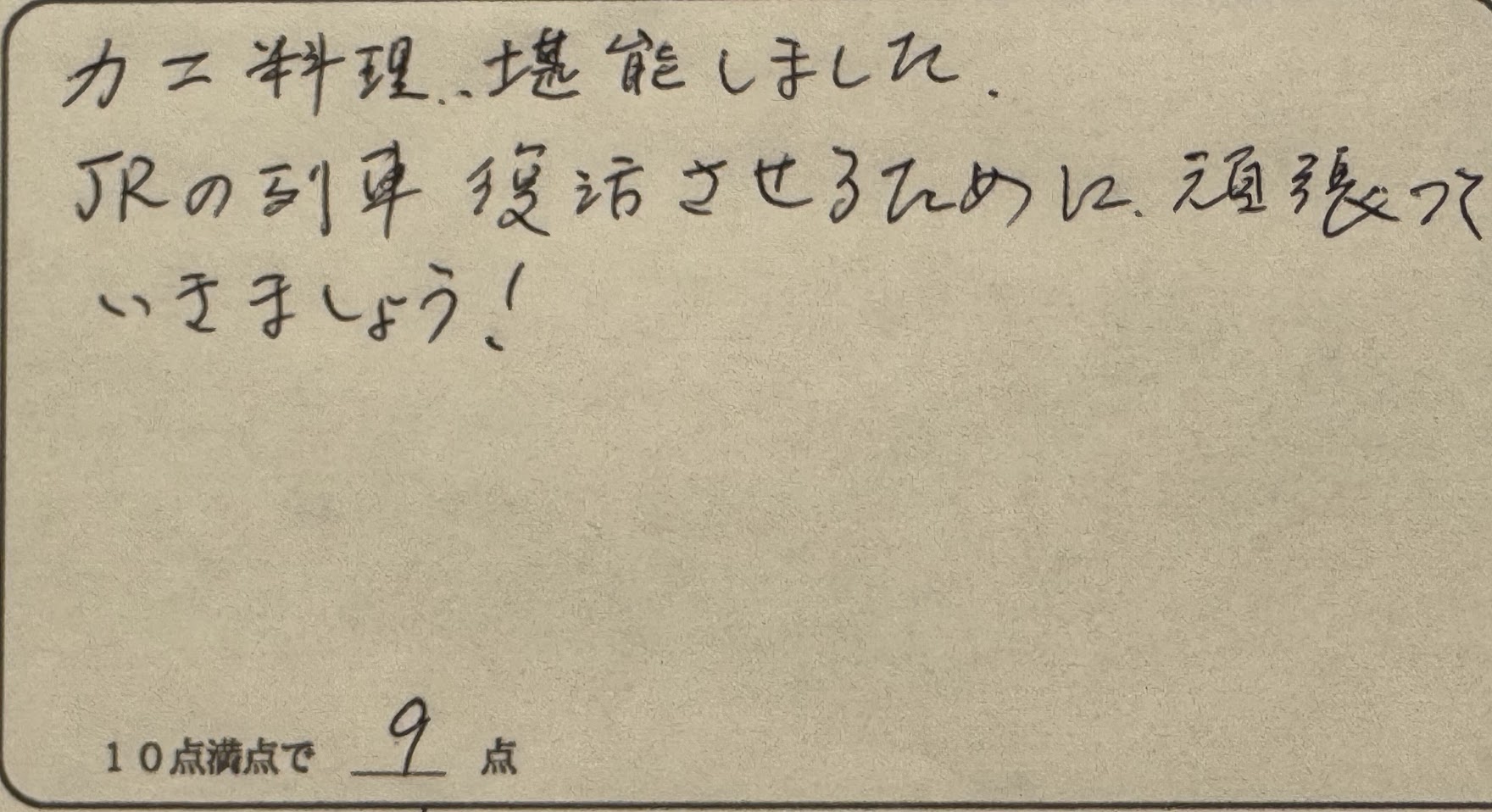 力ニ料理、堪能しました。 JRの列車復活させるために、頑張っていきましょう!(兵庫県N様 ご夫婦旅行 2025.10.21. 【春・秋P】かにプラン定番、迷ったらこれ!! ”香住ガニ2.5はい付フルコース”)