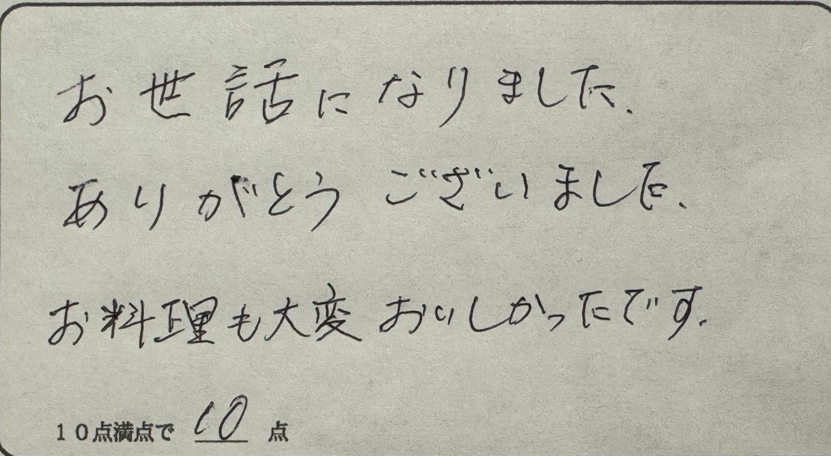 ありがとうございました。お料理も大変おいしかったです