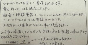 大変おいしく頂きました。みなさんの対応も心良く、快適に過ごすことができました。95才の母も日頂はあまり食べないのですが、かどやさんのお料理をたく山頂く所を見て私達も幸せです。ありがとうございました。
