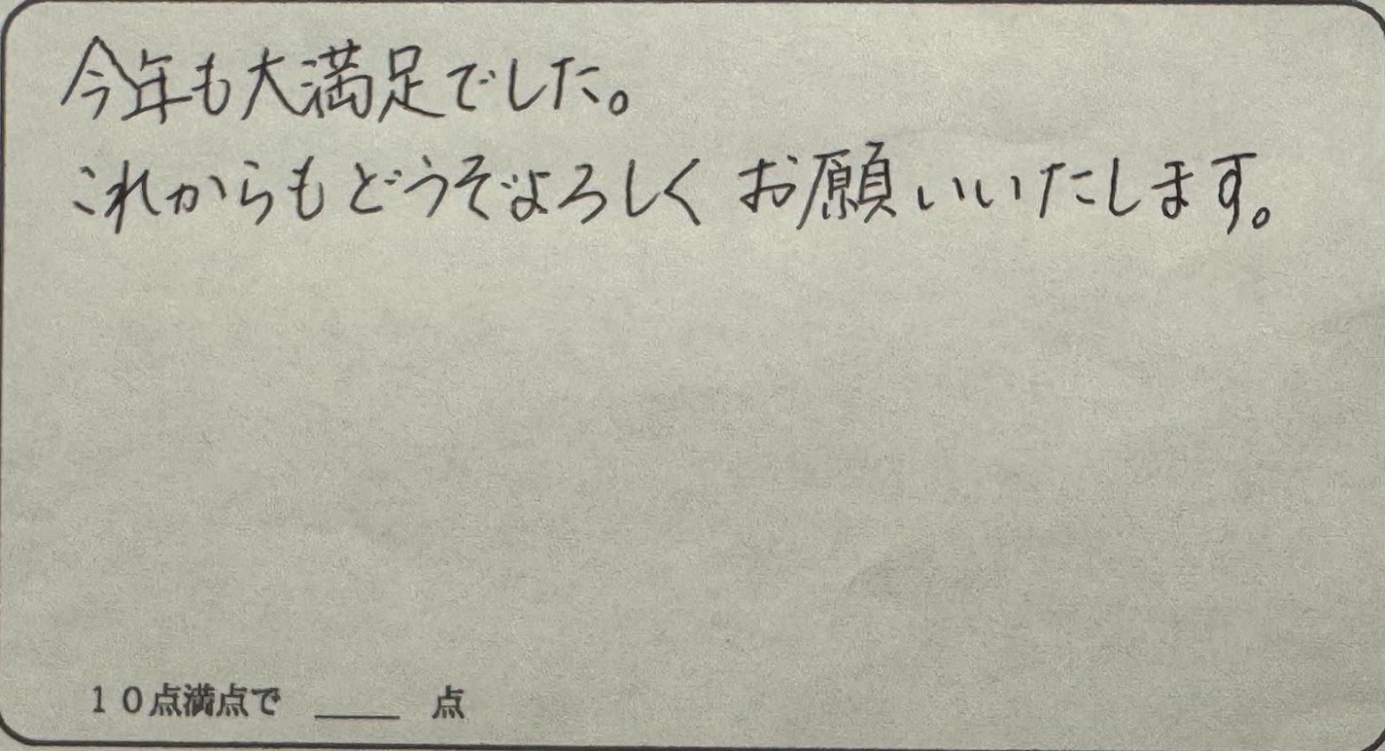 今年も大満足でした。これからもどうぞよろしくお願いいたします。(広島県F様 ご夫婦旅行 2025.11.12. 一度はしたかった贅沢!妻と温泉に入ってエエ蟹食べたい☆夫婦水入らずの口福旅☆特選柴山がにプラン)