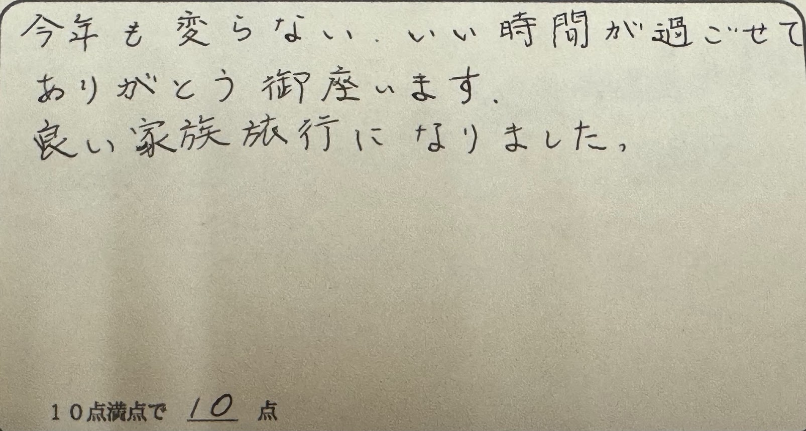 今年も変らない、いい時間が過ごせてありがとう御座います いい旅P お子様連れ家族旅行
