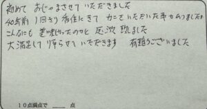 I様。いつも民宿美味し宿にご利用いただきまして誠にありがとうございます。今シーズン2度目、今回は初めてお越しの方を中心にお連れいただき、有難うございます。いただいたお声を見ますと、カニ料理に満足していただけたようで良かったです。