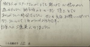 K様。この度は民宿美味し宿かどやへの2度目のご来館、誠にありがとうございました。皆様、ご満足していただけましたでしょうか。大雪が懸念される3連休でしたが、かにバス香住ライナーのおかげで、快適にお越しいただけたことと思います。来シーズン以降もぜひ、また皆様でカニ旅行ツアーを企画して下さいね。
