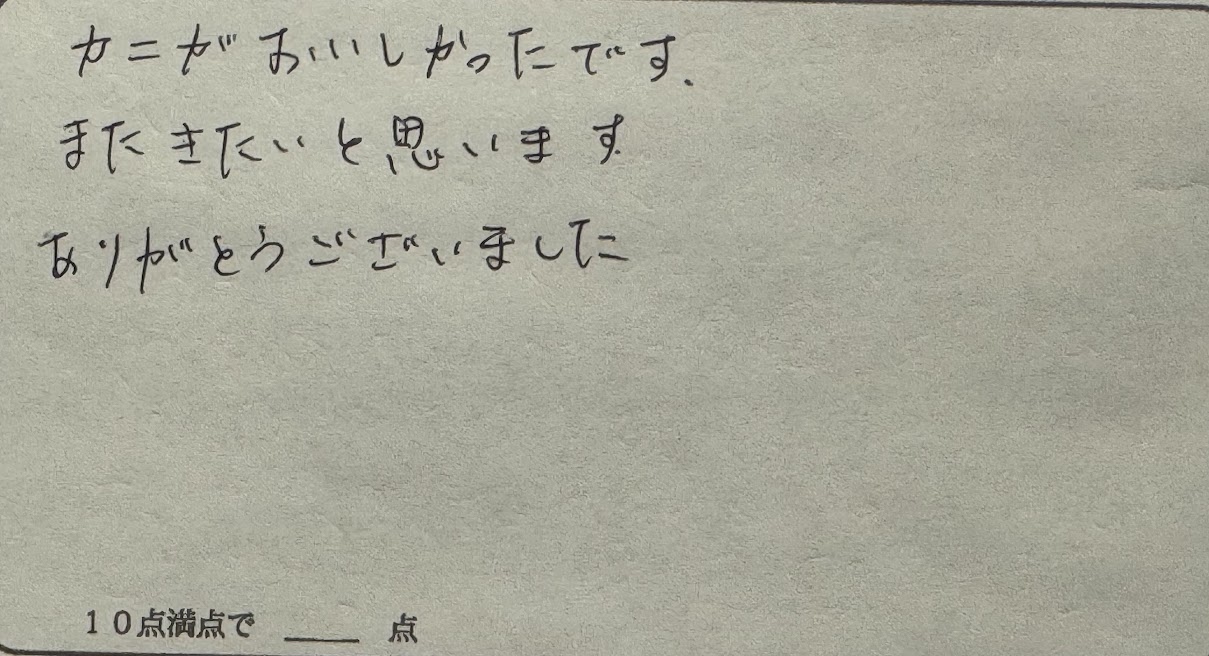 カニがおいしかったです。またきたいと思います