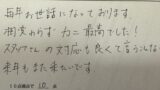 M様。いつも民宿美味し宿かどやにご利用いただき、誠にありがとうございます。皆さんお集まりいただいての恒例のカニ料理、今年も堪能していただけたようで良かったです。カニ料理のボリュームとお味は頑張ってこのまま続けてまいりたいと思います。ぜひ引き続き皆さんでお越しくださいね。又のお越しをお待ちしております。ありがとうございました。