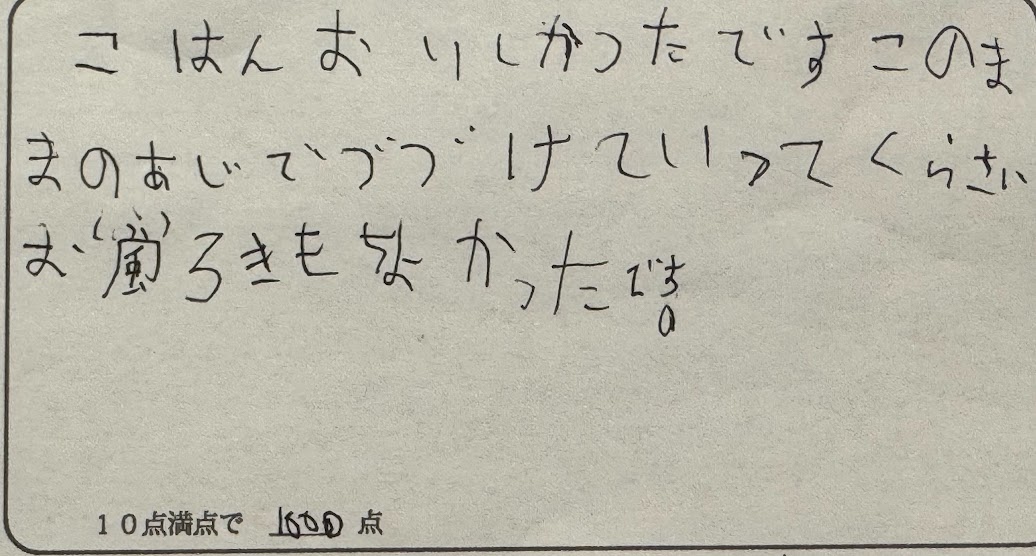 このままの味で続けて行って下さい