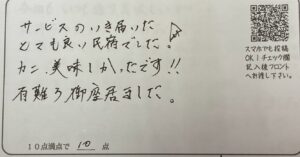 サービスのいき届いたとても良い民宿でした!カニ、美味しかったです!!有難う御座居ました。