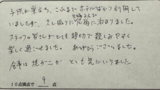 カップル・ご夫婦旅行 久し振りに夫婦2人で民宿に泊まりました 香住がに2はいP ご夫婦旅行 子供が巣立ち、これまでホテルばかり利用していましたが、久し振りに夫婦2人で民宿に泊まりました。 スタッフの皆さんがとても親切で親しみやすく楽しく過ごせました。ありがとうございました。 食事は焼ガニがとても気にいりました。(三重県I様 ご夫婦旅行 “香住ガニ2はいフルコース”) 2025.10.14 カップル・ご夫婦旅行