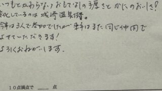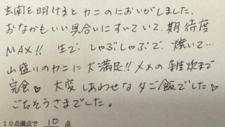 毎年かどやでカニ料理を楽しみにしています。あー今年も来れてよかったと思い、友人とまた来年こようね!!と 話しています。変わらないかどやでほっこりしています。「いつもとかわらないおもてなしの手厚さとかにのおいしさ!変化しているのは城崎温泉街。今年は3人で参加でしたが来年はまた同じ仲間でよせていただきます!