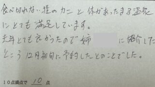 食べ切れない程のカニと体があったまる温泉にとても満足しています。去年とても良かったので姉に紹介したところ12月初旬に予約したとのことでした。(大阪府N様 お友達旅行 2025.11.28. ぷりっぷり食感☆活柴山かにの刺身付!“いい旅プラン 基本P”<香住>)