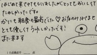 今年もお世話になることが出来ました。 添い寝で泊まっていた娘達ももう社会人となり仕事で、揃うタイミングをとるのが難しくなりましたが、 なんとか空きを探すことができ、嬉しかったです。 毎度のことながらカニも最高でした。夕食はもちろんのこと、朝食もとても楽しみです。温泉もとても気持ち良かったです。